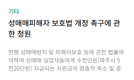 2. 국민동의청원 홈페이지 하단부로 이동하여 원하는 청원내용을 선택합니다.