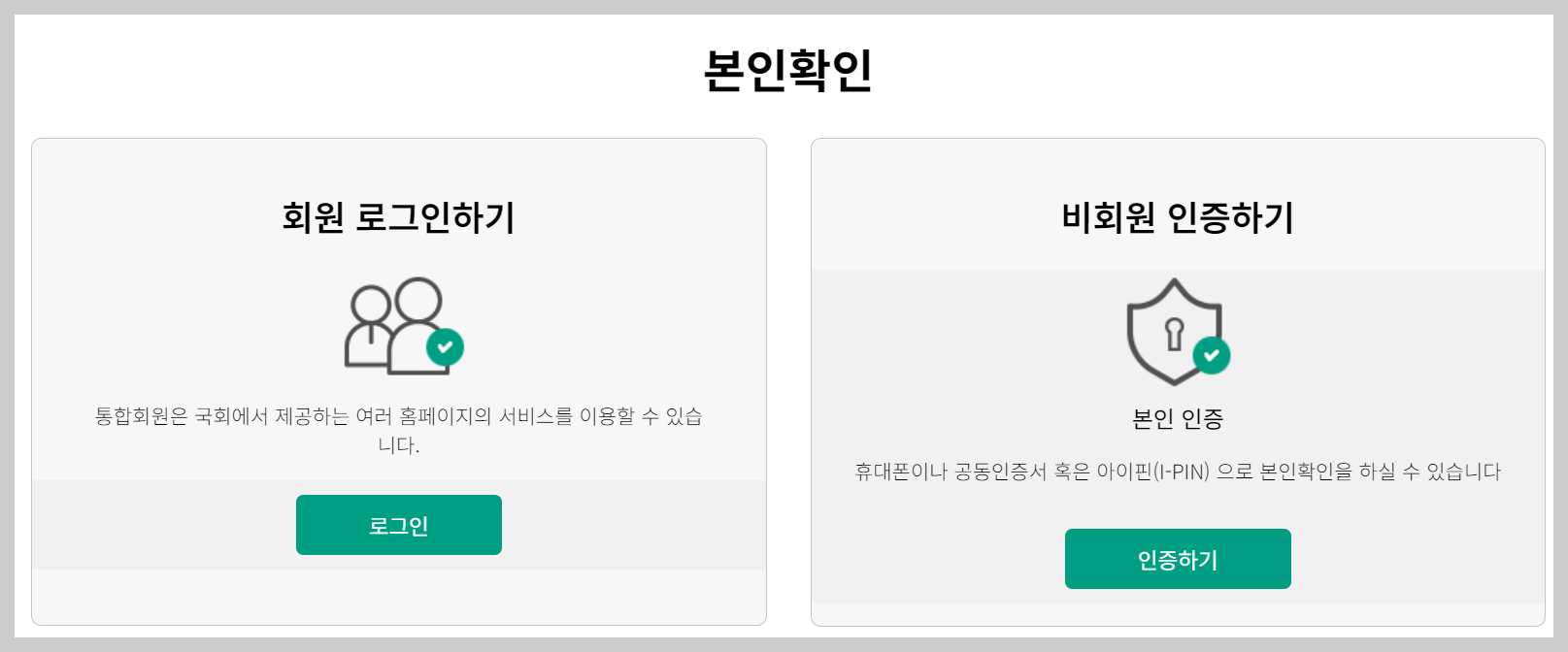 6. 홈페이지 회원일경우 아이디로 로그인 또는 비회원일 경우 본인인증을 진행합니다.