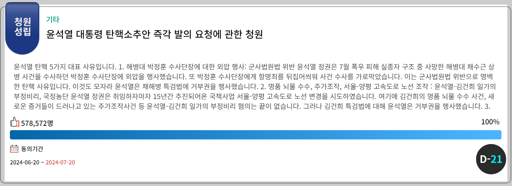 | 대통령 탄핵청원 사이트 및 실시간 조회방법 (0) | 2024.07.02 |