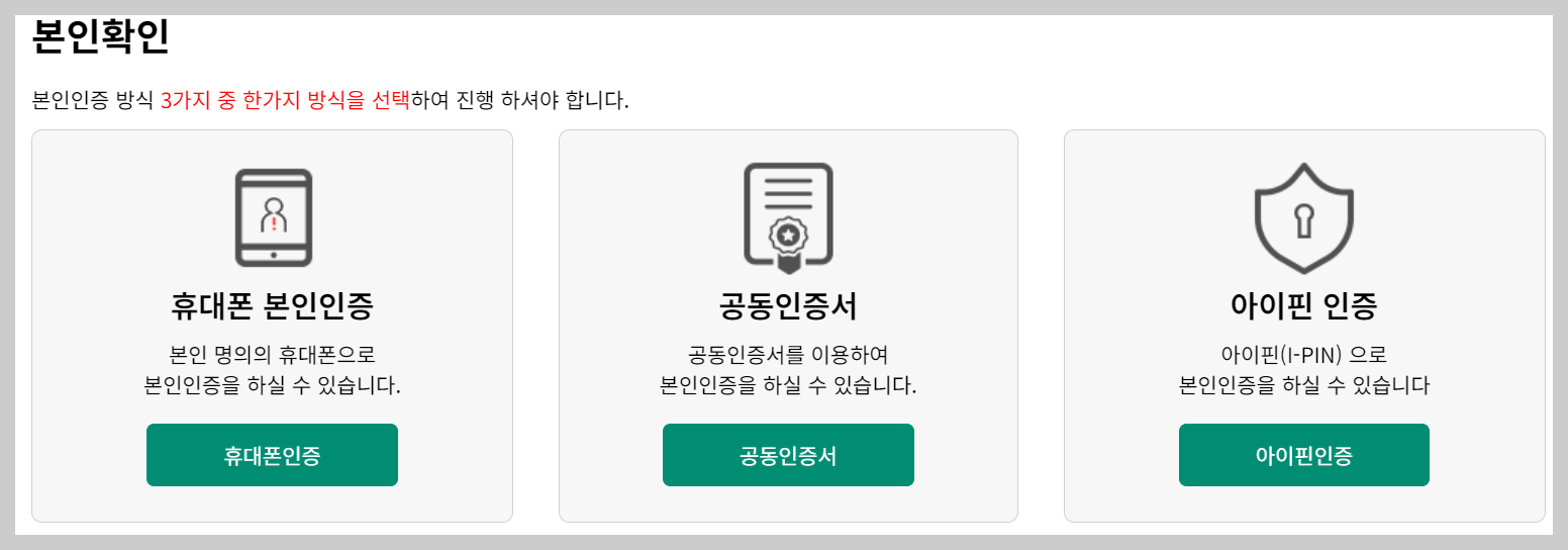 8. 비회원일 경우 휴대폰 본인인증과 그외 공동인증서 아이핀인증으로 본인인증을 진행합니다.