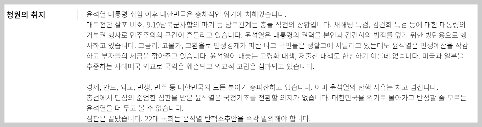 - 윤석열대통령 탄핵반대청원 링크 사이트 바로가기