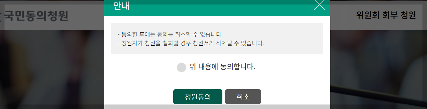 ▣ 휴대폰인증후 국민동의청원 동의하기