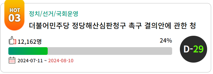 1. 국민동의청원(민주당해산 청원) 사이트에 접속합니다.