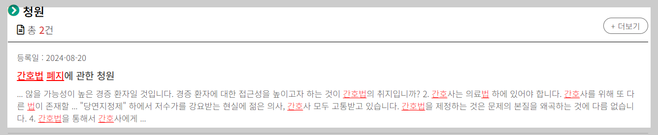 3.검색된 내용중 간호법 폐지에 관한 청원글을 선택합니다.