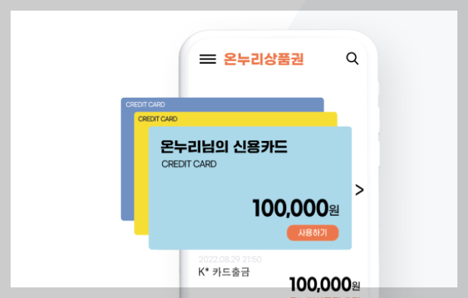 카드형 온누리상품권은 온누리상품권 앱 설치 후 기존 갖고있는 카드를 등록하고 금액충전 후, 실물카드 결제 방식으로 이용 가능한 온누리상품권입니다. 구글 플레이스토어 또는 앱스토어에서 “온누리상품권” 검색하여 설치 후 안내에 따라 회원가입 진행합니다. ※ 휴대폰의 본인 명의 여부를 꼭 확인해주시기 바랍니다.