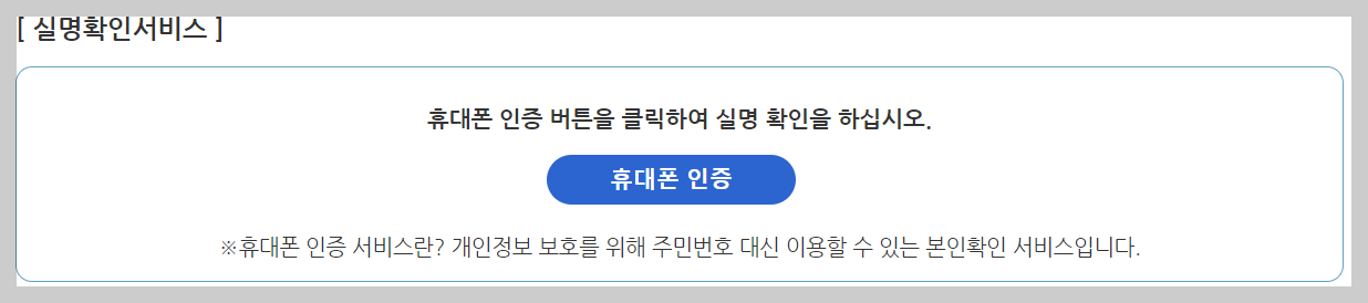 4. 개인정보수집및 활용동의서에 체크한후 휴대폰 실명인증을 진행합니다.