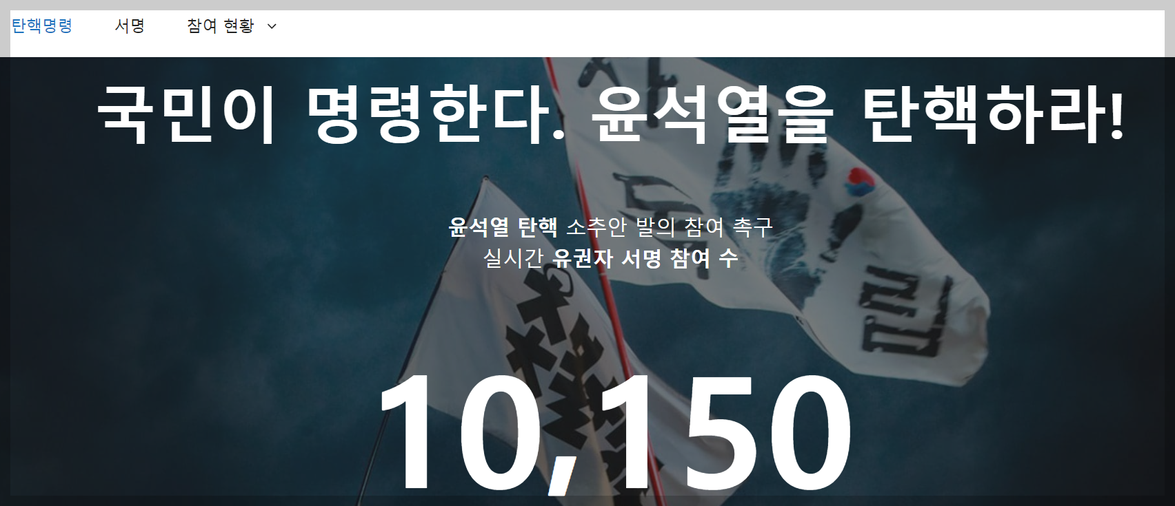 1. 탄핵명령 홈페이지에 접속합니다.(홈페이지주소를 입력하기보다는 위 링크를 통해 진행하는것을 권해드립니다.)