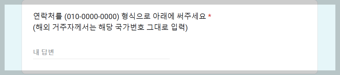 6.연락처를 (010-0000-0000) 형식으로 아래에 작성합니다.(해외 거주자께서는 해당 국가번호 그대로 입력)