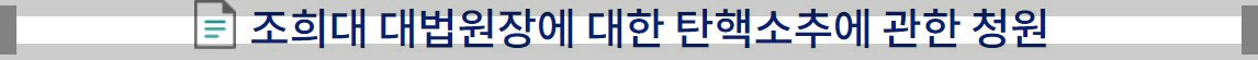 2025년 5월7일 금일 시점으로 조희대 탄핵 (대법원장) 관련 청원이 국민동의청원 홈페이지에 청원되었습니다. 대법원장 탄핵은 사상 처음있는 일이며 조희대 탄핵(대법원장)의 성사와 무관하게 매우 충격적인 일 입니다. 이번 조희대 탄핵 국민청원을 작성한 청원의 취지 내용은 대법원장 조희대는 그 직무집행에 있어서 헌법상의 책무를 위반하고 사법독립의 수호자로서의 역할을 포기하고, 헌법과 법률을 위반하여 이재명 더불어민주당 대선 후보에게 공직선거법 위반 유죄 취지의 파기 환송을 한 바, 이 사건은 사법의 탈을 쓴 정치와 선거 개입이며, 헌법 정신을 정면으로 거스른 불법행위에 해당하므로 국회는 헌법 제65조 제1항에 따라 그 우두머리 조희대 대법원장의 탄핵을 즉각 발의하고 소추를 의결하라고 밝히고 있습니다.