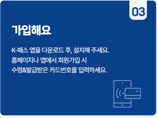3.K-패스 앱을 다운로드 후, 설치해 주세요.홈페이지나 앱에서 회원가입 시수령&발급받은 카드번호를 입력하세요.