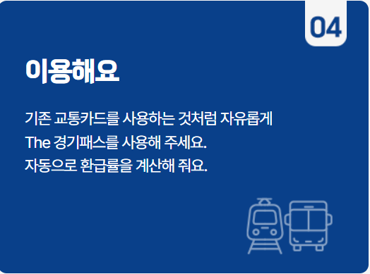 4.기존 교통카드를 사용하는 것처럼 자유롭게The 경기패스를 사용해 주세요.자동으로 환급률을 계산해 줘요.